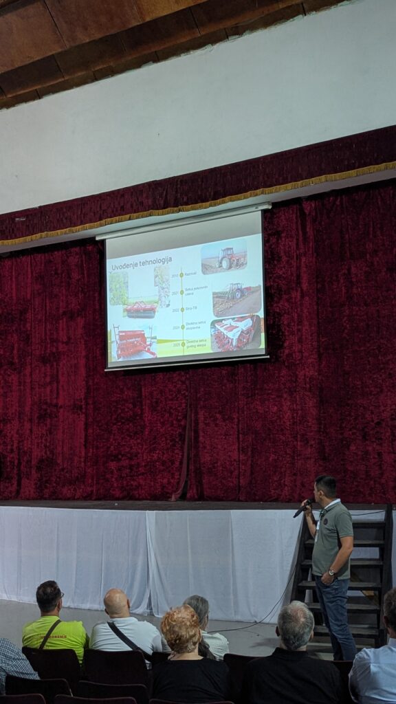 The host of the event, Teodor Baloš, is an experienced regenerative farmer cultivating 85 hectares of degraded chernozem using regenerative methods to grow wheat, corn, soybeans, beans, and sunflowers. Attendees participated in lectures and toured his fields to witness firsthand the long-term effects of regenerative practices.
